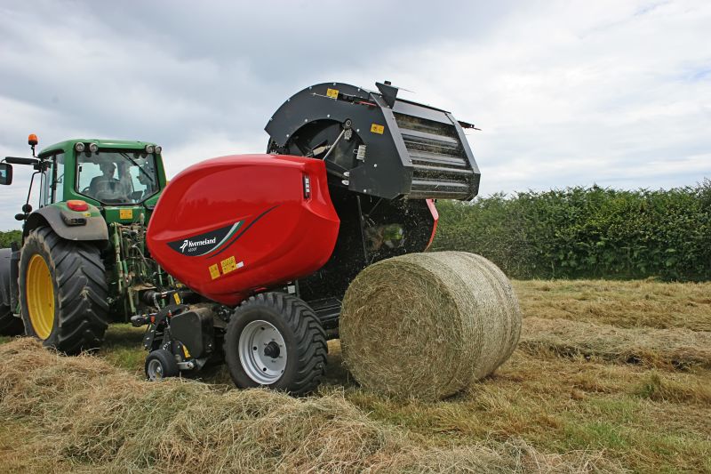 Fixed Chamber Round Balers - Kverneland 6500 F, operating on field with low power requirements