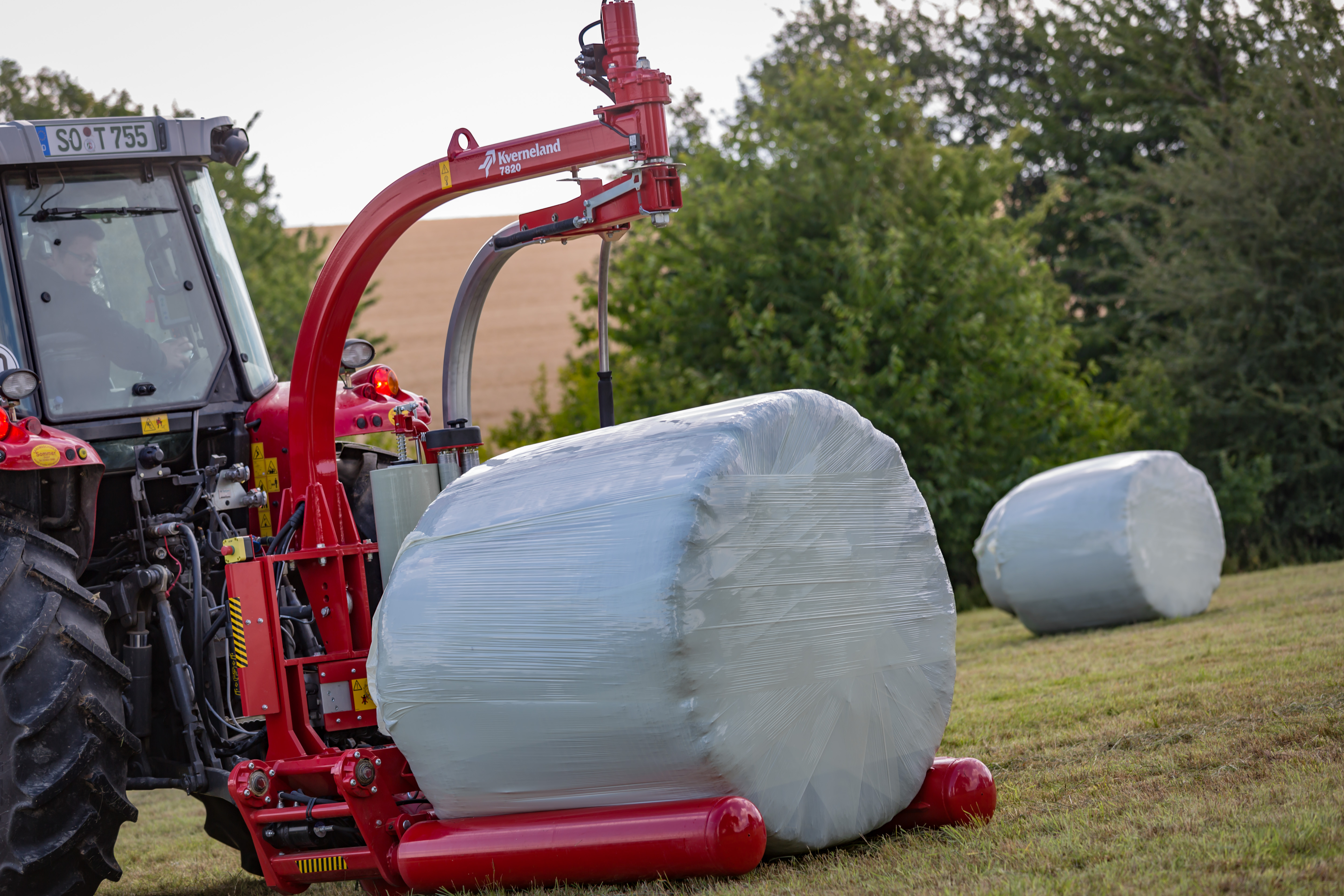 Round Bale Wrappers - Kverneland 7820, gently self-loading system and can wrap on the move so it operates effectively