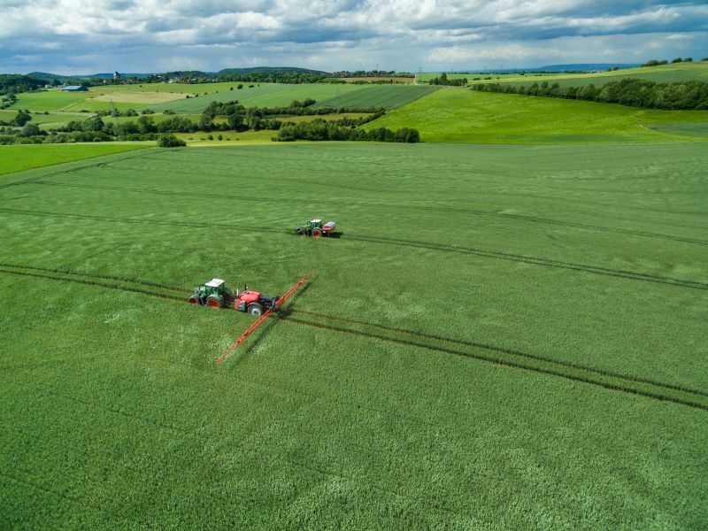 Kverneland iXtrack T3 trailed sprayer and Kverneland Exacta TL GEOSPREAD disc spreader together in the field