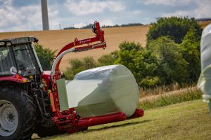 Round Bale Wrappers - Kverneland 7820, gently self-loading system and can wrap on the move so it operates effectively