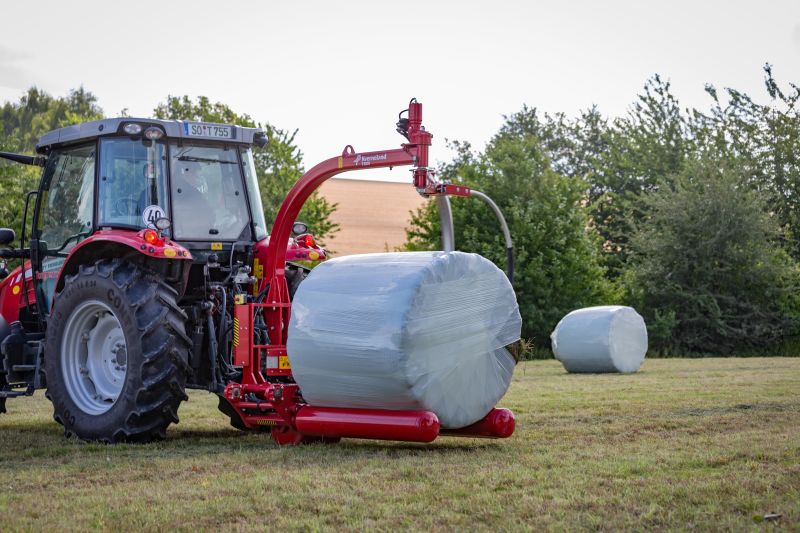 Round Bale Wrappers - Kverneland 7820, gently self-loading system and can wrap on the move so it operates effectively
